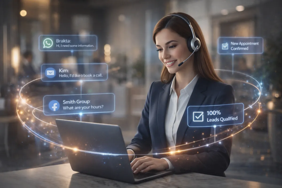 Responds on WhatsApp, Instagram, Facebook Messenger, and website chat