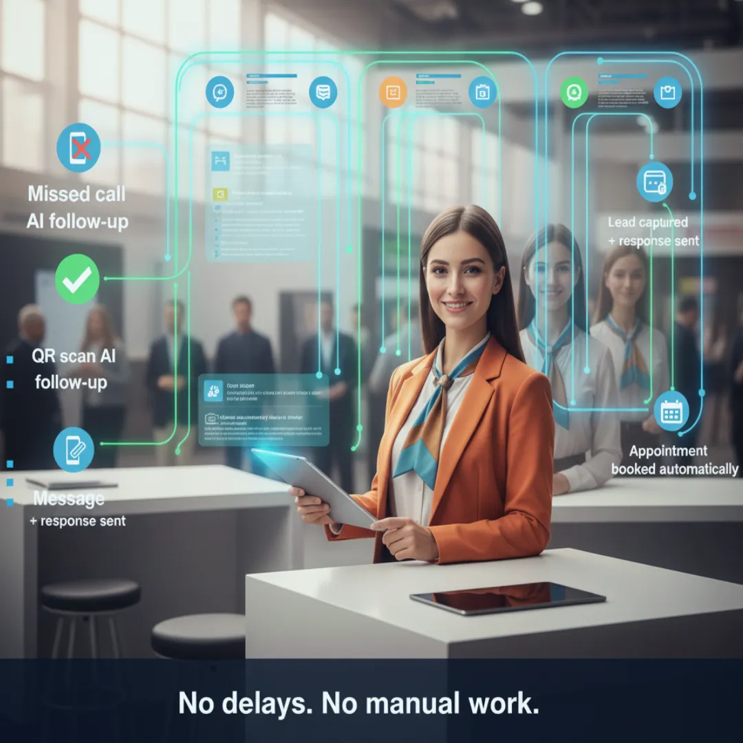 As soon as a visitor scans your QR code, their information is captured instantly, and they receive an immediate WhatsApp message that turns their interest into a hot, sales-ready lead. No business cards, no missed follow-ups — every interaction becomes a real opportunity.